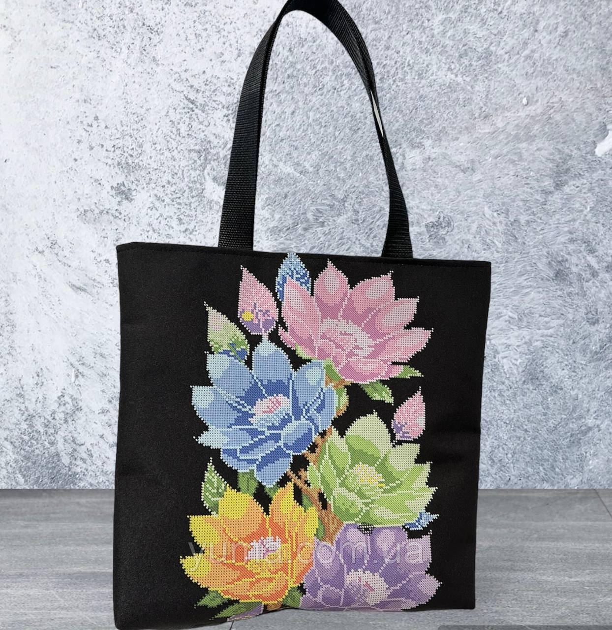 Сумка для вишивки бісером, модель Кольорова,  пошита з високоякісного габардину проклеєного флизелином  або щільної палаточної тканини Оксфорд (на замовлення). В середині є підклад (плащівка) з карманом. Ручки виготовленні з  галантерейної стропи (ремінна стрічка), довжина ручок 60 см. Розмір сумки: ширина 37 см, висота 33 см. дно 6 см.  Якісна фурнітура, блискавка спіраль. Ціна вказана за габардин.  Ціна сумки на тканині оксфорд уточнювати у менеджера.  Вишивши дану сумку Ви матемете ексклюзивну річ що радуватиме вас та оточуючих та служитиме Вам довгий час.