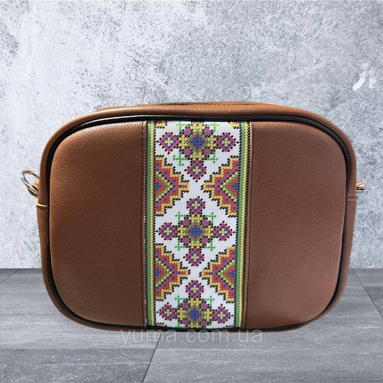 Пошита сумка для вишивки бісером. Основа натуральна шкіра, малюнок нанесено на тканині оксфорд. Малюнок не змивається. Розміри: ширина 25 см., висота 19 см., ширина дна 8 см. В середині сумки використовується якісна текстильна підкладка. Сумка тримає форму, ремінь регулюється. В сумці є 2 кишені. Також має доступ до вишивки на блискавці. Ремень може бути інший.