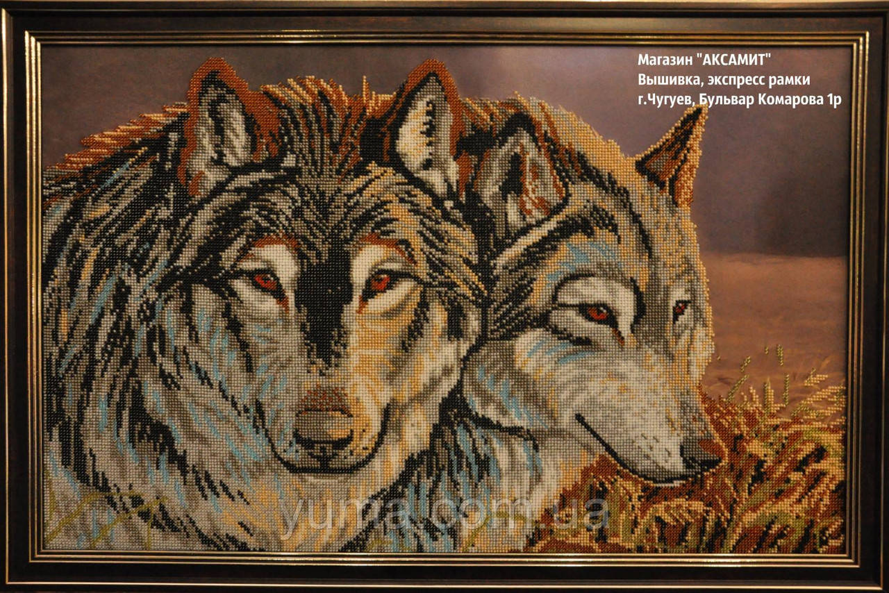 Схема (заготівля) для вишивки бісером картин на високоякісному атласі Вовки подклеенная двома шарами флізеліну для зручності вишивання. Розмір зашиття 40 на 60см